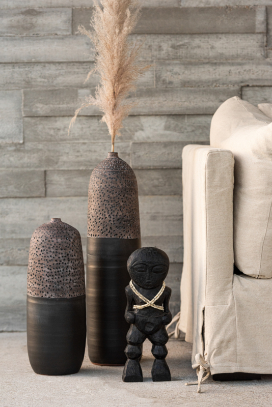 Breng een uniek element in je interieur met dit stoere beeld, handgemaakt van 100% mangohout.