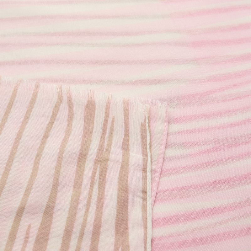 Zomerse sjaal in vrolijke roze met zandkleurige strepen.