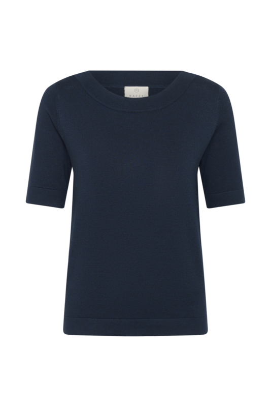 Fijngebreid truitje met ronde hals en een 1/2 mouw in een frisse kleur.